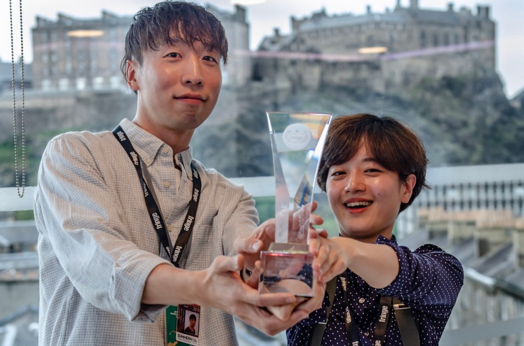 Anatoliy won the Founder’s Award for his performance in OTOSOTR [short for “on the other side of the river”]. Anatoliy is pictured with his colleague Tatyana Kim. Both are from Kazakhstan.